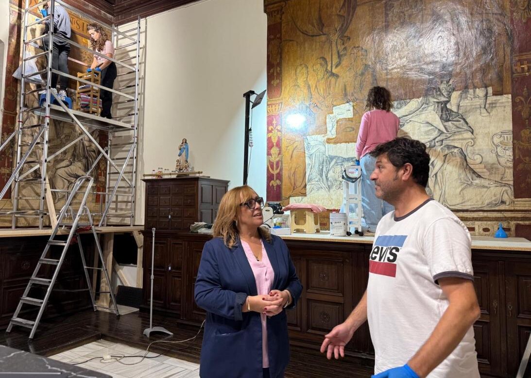 La viceconsejera ha explicado que las actuaciones consisten en labores de limpieza con eliminación de barnice y repintes; la consolidación de los estratos intermedios y la protección temporal; la eliminación de materiales ajenos además del relleno con mortero.