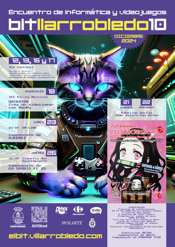 Por otro lado, el Bit incluye el evento Villarrobledo Go, el salón del manga y la Cultura alternativa que tendrá lugar el fin de semana del 21 y 22 de diciembre, en el pabellón Polideportivo Juan Valero-San Antón desde las 11 de la mañana a las 8 de la tarde.