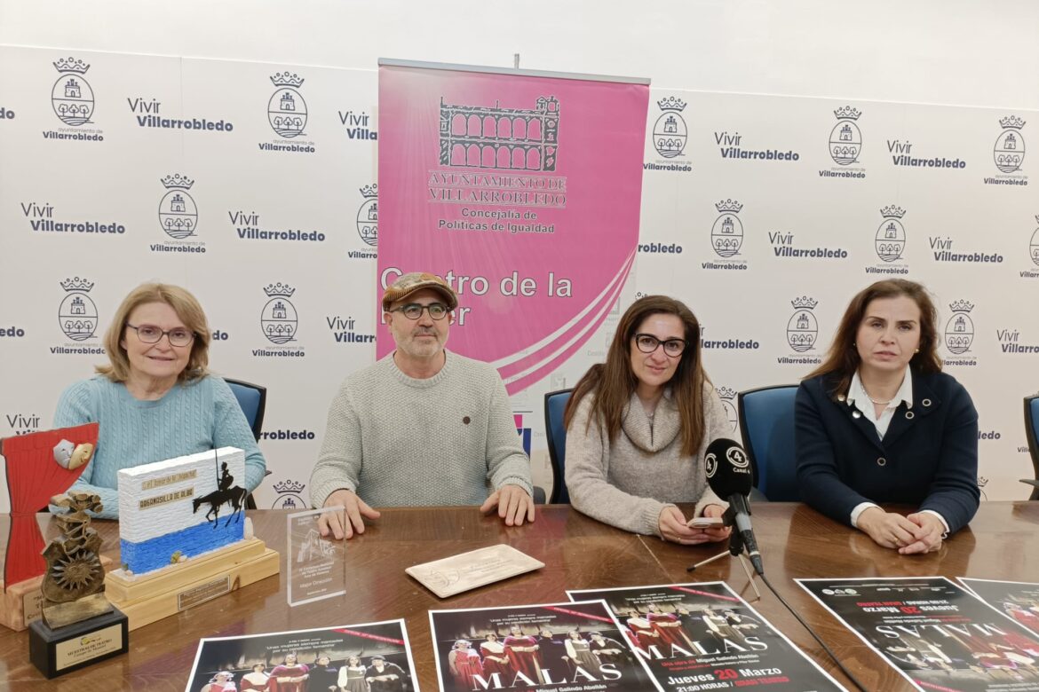 La obra de teatro MALAS, de Miguel Galindo, dirigida por Manolo Valero y Pilar Simón vuelve a las tablas del Gran Teatro este jueves, 20 de marzo, a las 21 horas, enmarcada dentro de las actividades del Día Internacional de la Mujer, programadas desde el Ayuntamiento de Villarrobledo, a través del Centro de la Mujer.