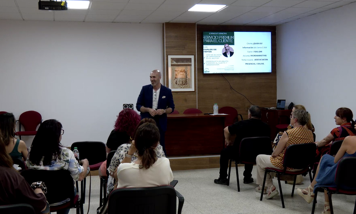 La primera de estas charlas, ha sido impartida por el especialista en el sector del comercio, Carlos de Hoyos, que ofreció a los asistentes una formación en relación al “Servicio Premium para el Cliente”.