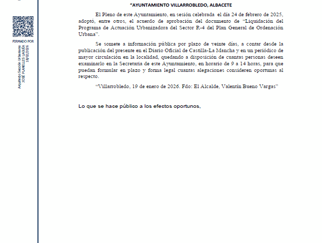 En el Diario Oficial de Castilla La Mancha nº 32, de fecha 17 de febrero de 2026,se ha publicado el siguiente ANUNCIO “AYUNTAMIENTO VILLARROBLEDO, ALBACETE…