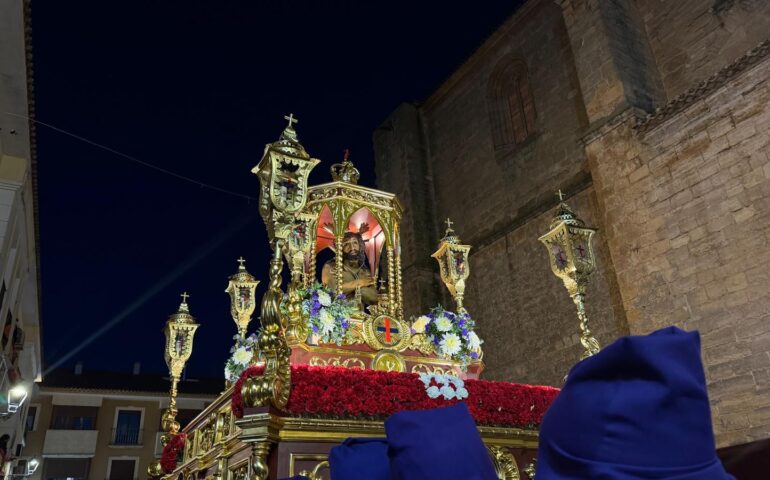 La Procesión del Prendimiento, que conmemora el arresto de Jesús, recorre las calles de la localidad con imágenes emblemáticas acompañadas por cofrades, nazarenos y bandas…