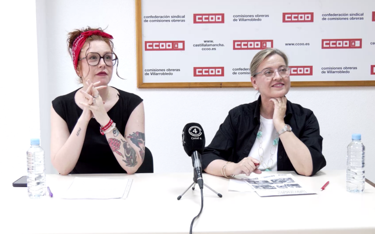 La responsable en la comarca de Villarrobledo, Engracia Pérez, y la Secretaria de Igualdad de CCOO Albacete, María Olivas, informan del servicio de asesoramiento del…