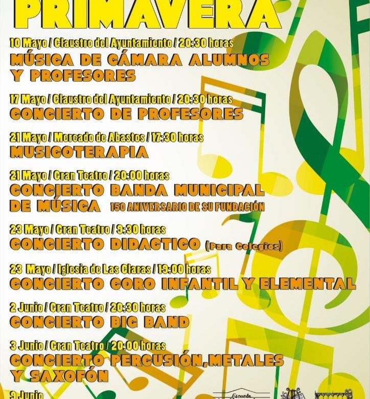 Para este mes serán muchas las actividades musicales que se celebrarán en Villarrobledo y que comenzarán a partir del 10 de mayo a las 8 y media de la tarde con un concierto de música de cámara a cargo de los alumnos de profesores de la Escuela Municipal de Música en el Claustro del Ayuntamiento.