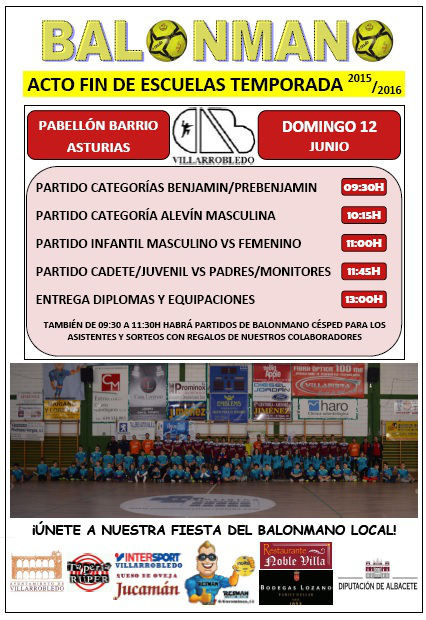 Lisardo Fernández, presidente del Club de Balonmano, ha remarcado la importancia que tiene el balonmano de Villarrobledo tanto a nivel regional como nacional, y ha destacado el importante apoyo de los padres y alumnos para que así sea. Además se ha referido a este evento como una fiesta del balonmano en la que se realizará una muestra que contará también con el aliciente del jugador Ángel Montoro.