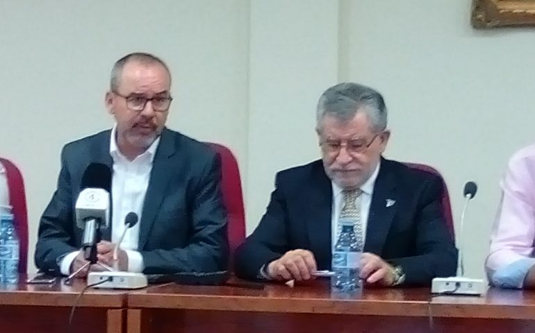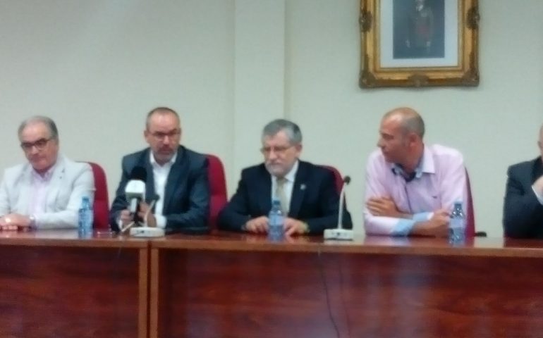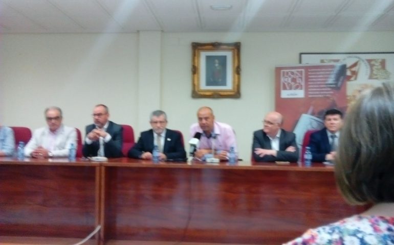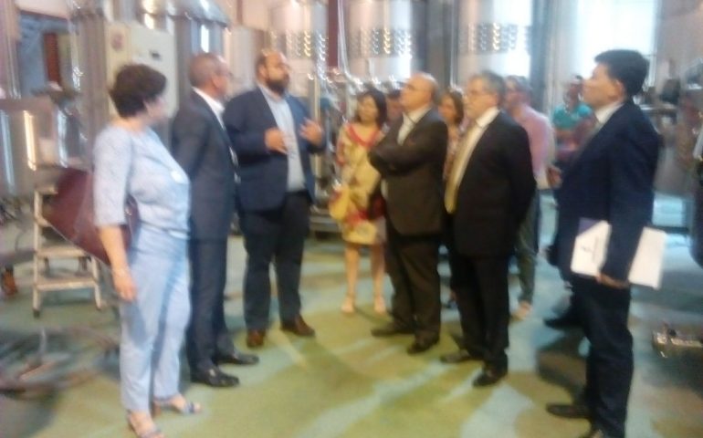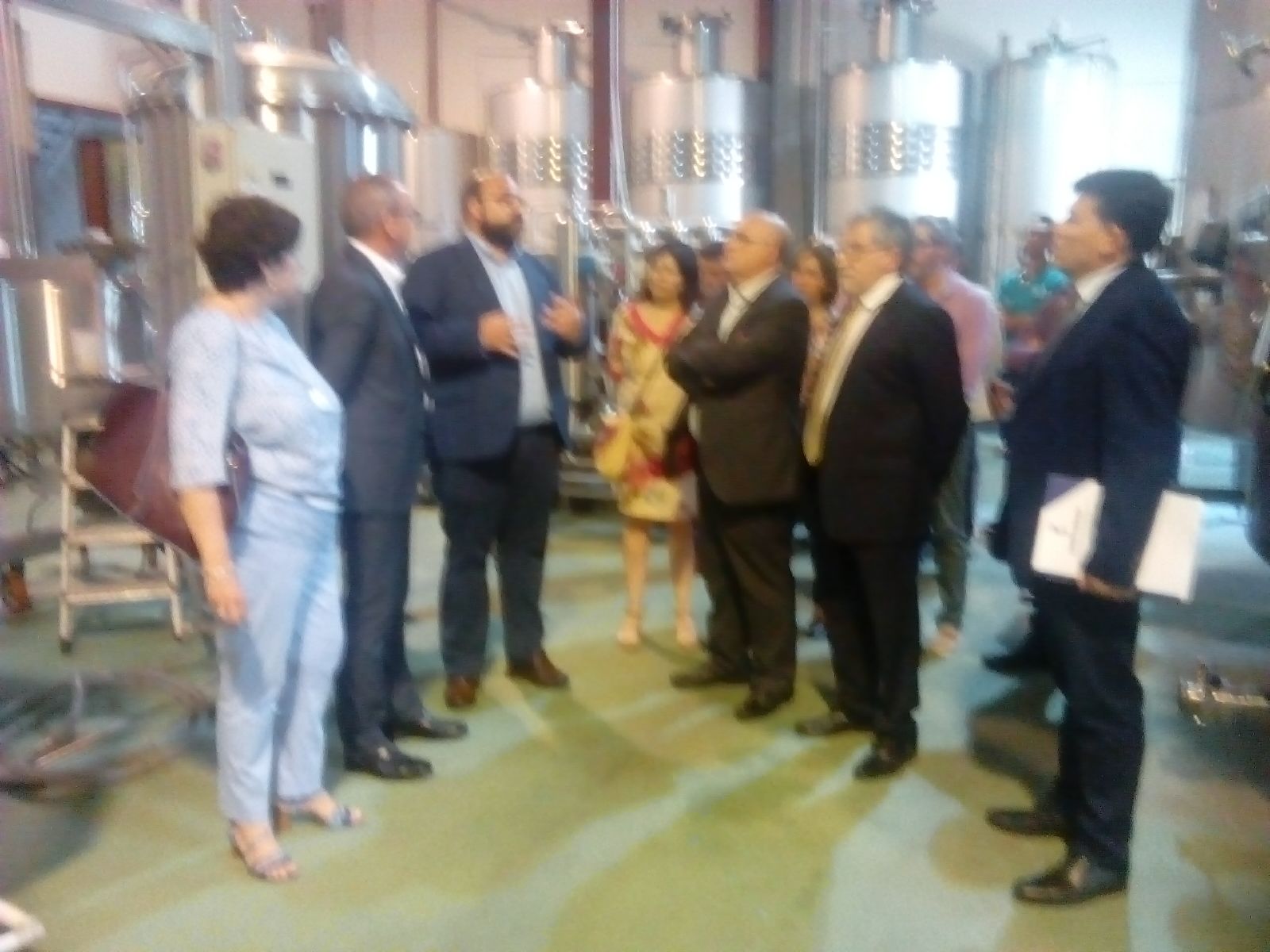El consejero de Educación, Cultura y Deportes de Castilla La Mancha, Ángel Felpeto, ha visitado la cooperativa Vinícola de Villarrobledo acompañado por el director provincial de Educación, Diego Pérez, el Delegado de la Junta en Albacete, Pedro Antonio Ruiz Santos, Miguel Ruescas, presidente del Colegio de Enólogos de Castilla La Mancha, Juan Carlos Moreno, director del I.E.S Cencibel, la viceconsejera de educación María Dolores López, así como por el Alcalde de la localidad, Alberto González, junto con miembros de la corporación local y el presidente de la Cooperativa, José Parra.