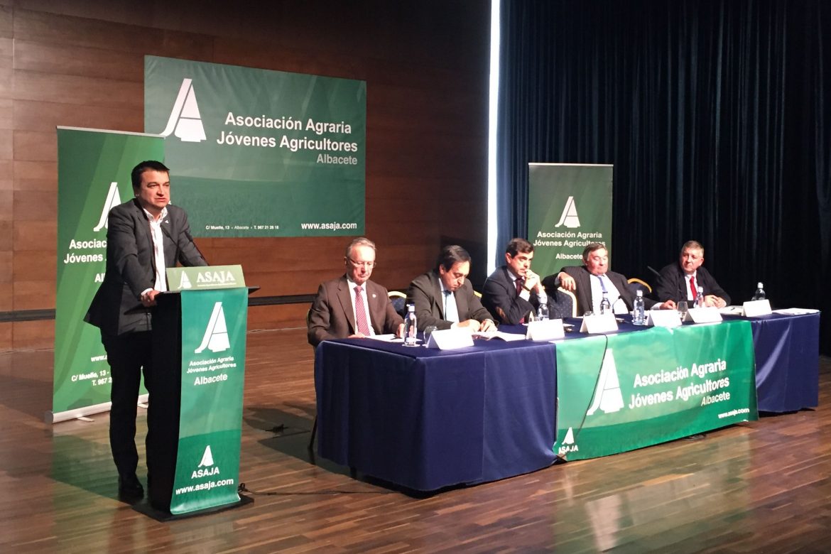 “El adelanto de la PAC se ha hecho en Castilla-La Mancha dos semanas antes que el año pasado y hoy 100.000 agricultores han recibido ya el anticipo”, ha manifestado el consejero de Agricultura, Medio Ambiente y Desarrollo Rural, Francisco Martínez Arroyo, en la clausura de la XXVII Asamblea General Ordinaria de ASAJA Albacete en el Palacio de Congresos de la capital, junto al presidente nacional de ASAJA, Pedro Barato, el presidente de ASAJA Albacete, José Pérez Cuenca, el secretario general de ASAJA Albacete, Jorge Navarro y el alcalde de la capital, Javier Cuenca, además del vicepresidente de Globalcaja, Carlos de la Sierra.