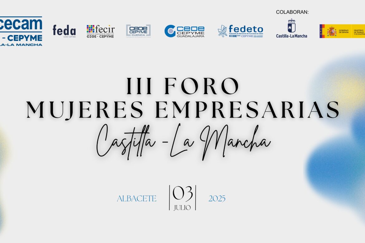 Con el objetivo principal de impulsar la figura de las mujeres empresarias de nuestra región y visibilizar la labor de las organizaciones empresariales a favor de las empresas en materia de igualdad, CECAM CEOE-CEPYME Castilla-La Mancha, en colaboración con sus organizaciones empresariales provinciales, celebrará por tercer año consecutivo el III Foro Mujeres Empresarias de Castilla-La Mancha, que tendrá lugar el próximo jueves 3 de julio, en la sede de FEDA, en Albacete.