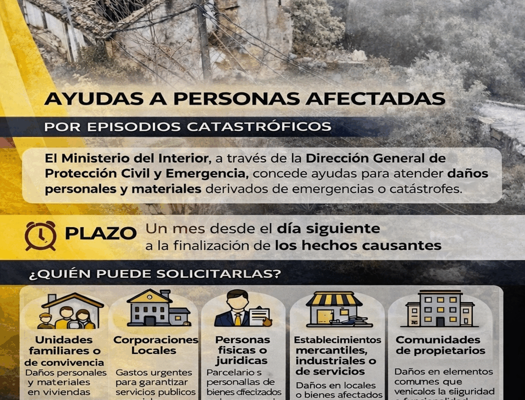 Para más información sobre los requisitos específicos, documentación necesaria, así como las líneas de apoyo en situaciones de emergencia y catástrofe, los interesados pueden consultar la información actualizada por la Dirección General de Protección Civil y Emergencias en su web oficial en el apartado de Líneas de ayuda (https://www.proteccioncivil.es/es/ayudas/lineas-de-ayuda).
