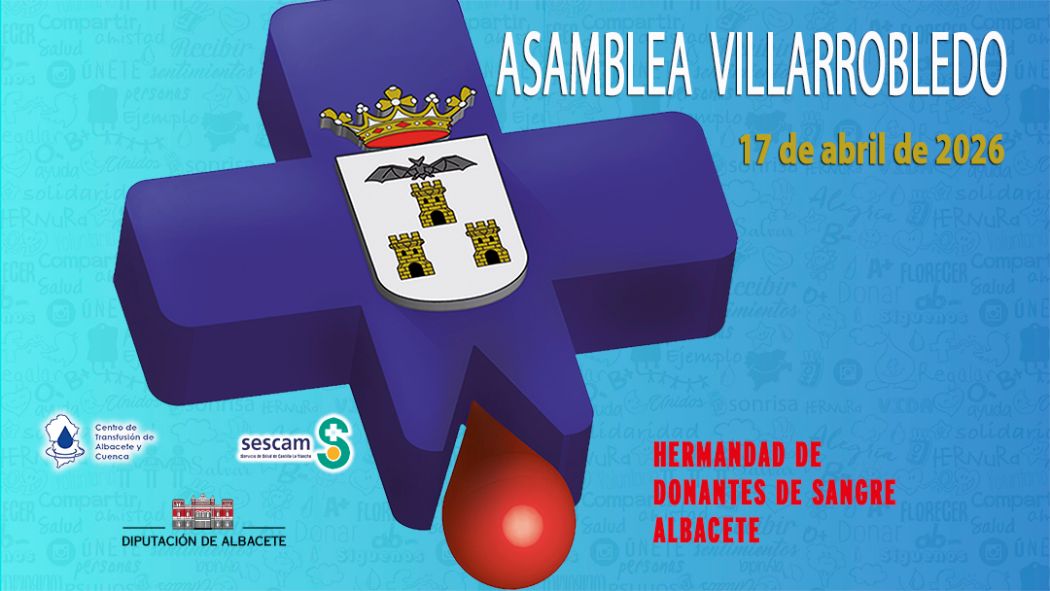 La Hermandad de Donantes de Sangre de Albacete celebrará su Asamblea Local Informativa en VILLARROBLEDO mañana viernes, 17 de abril, a las 19 horas en el SALÓN DE ACTOS DEL HOSPITAL de esta localidad.